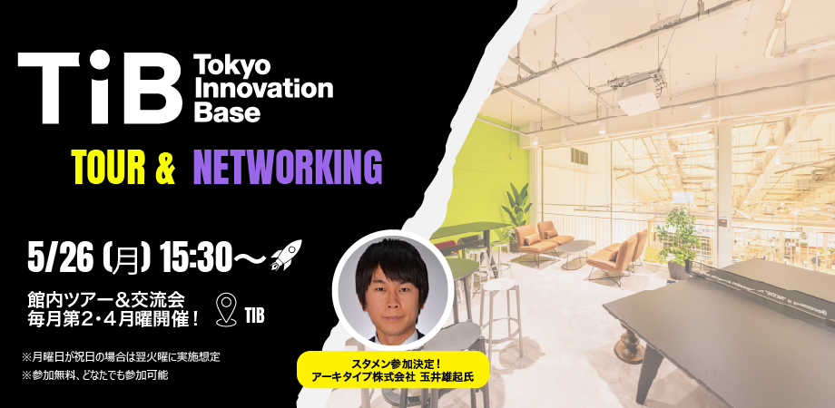 5月より「Tokyo Innovation Base(TIB)」定期ツアー&交流会が始まります! この度TIBでは、すでにTIBをご活用いただいている皆様、これからTIBを活用した... powered by Peatix : More than a ticket.