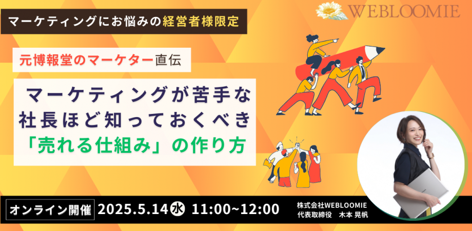 ◆◆内容◆◆ ページをご覧いただき、誠にありがとうございます。マーケティング会社の、株式会社WEBLOOMIEと申します。 中小企業の経営者のみなさま、貴社のホームページが「ただの... powered by Peatix : More than a ticket.