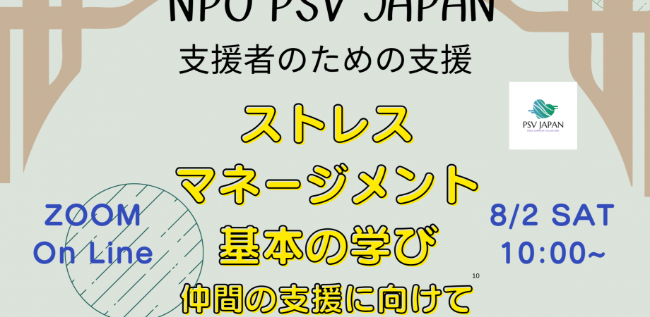 ストレスマネ-ジメント 基本の学び 仲間の支援に向けてのご案内 特定非営利活動法人PSV JAPANは、ストレスマネージメント 基本の学び 仲間の支援に向けてのセミナーを開催致しま... powered by Peatix : More than a ticket.
