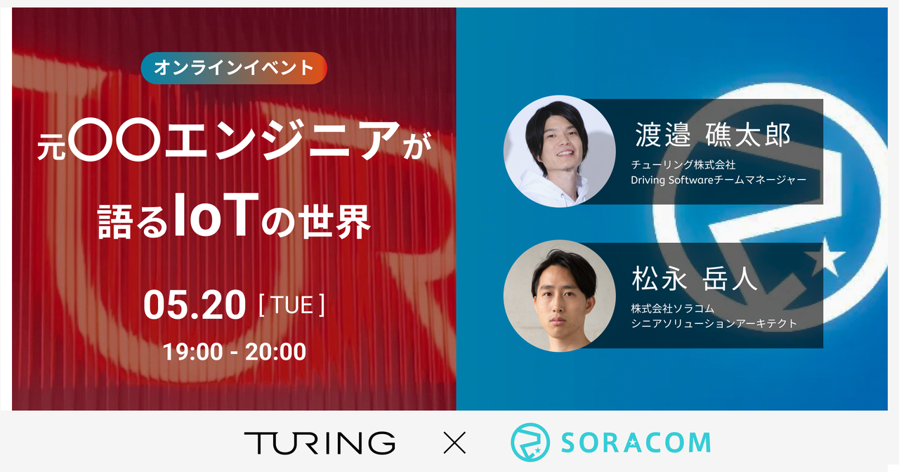# イベントについて IoTの世界は、ハードウェア、通信、クラウド、AIなど多様な技術が交わる最前線。そこには、決まった正解はありません。本イベントでは、それぞれ異なるバックグラウンドからIoTの現場に飛び込んだ2名のエンジニアが登壇。 「元Webエンジニア」「元プロダクトオーナー」という経歴を持ちながら、現在は自動運転やコネクテッドカーといった先端分野のIoT開発に取り組む彼らが、技術選定・実装・現場での工夫までを具体的に語ります。 * ソラコムからは、コネクテッド領域における取り組みとソリューションアーキテクト・エンジニアの仕事 * チューリングからは、LinuxとPyt...