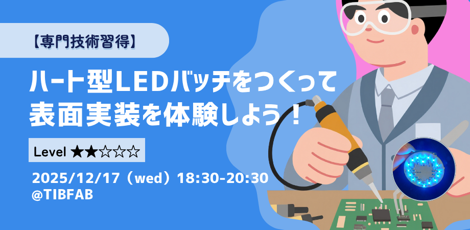 ハート型LEDバッジを作成して、回路設計、表面実装基礎まで学ぼう! プリント基板へ電子部品を取り付けるための方式の一つである“表面実装技術(SMT)”の基礎... powered by Peatix : More than a ticket.