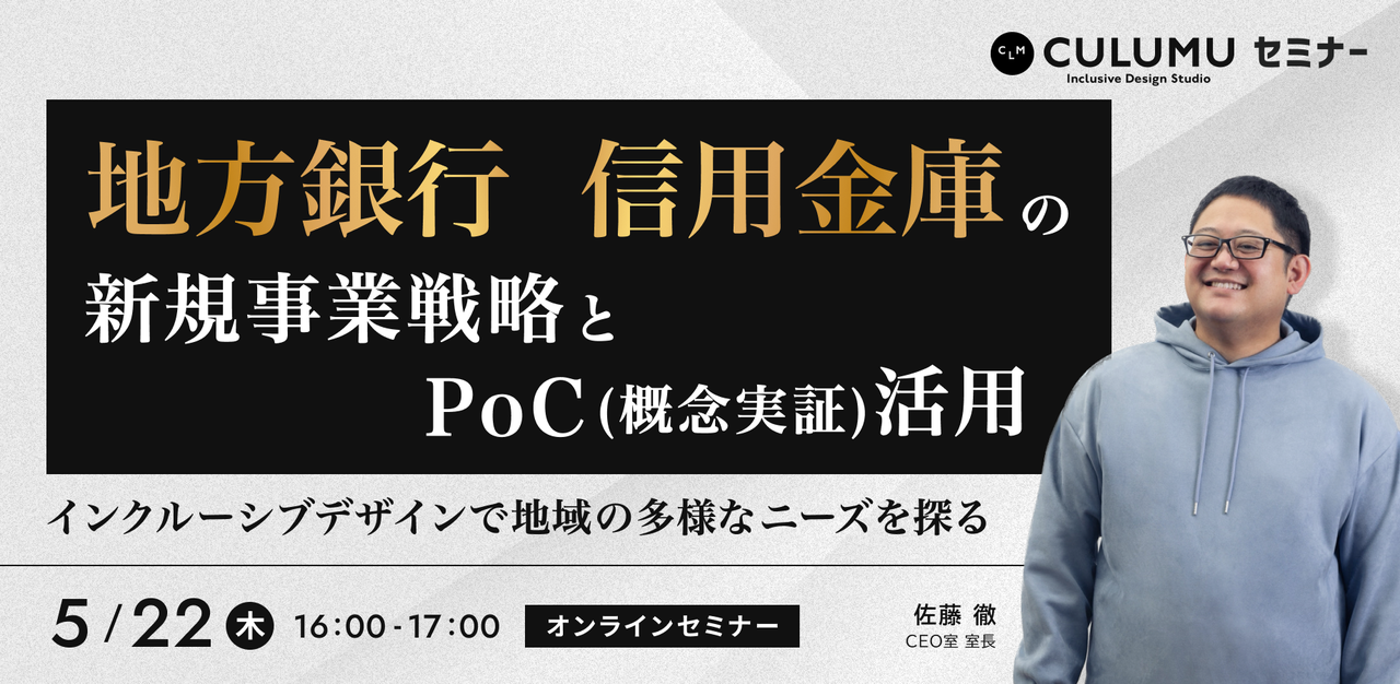 地域の課題に寄り添いながらも、事業としての持続性を求められる地方銀行・信用金庫。地域経済を支える役割を期待される中、新規事業開発の重要性はますます高まっています。しかし、多くの地域金融機関がPoC(概念実証)を実施しても、「実験だけで終わってしまう」「事業化につながらない」という課題を抱えています。 本セミナーでは、地域社会における多様な顧客ニーズの見極め方や、インクルーシブデザインを活用したプロトタイピング手法など、具体的な新規事業開発のポイントを紹介します。また、PoCを実際に事業化までつなげた成功事例を通じて、経営層の意思決定を促す実践的な方法を解説します。地域の行政・企業・...