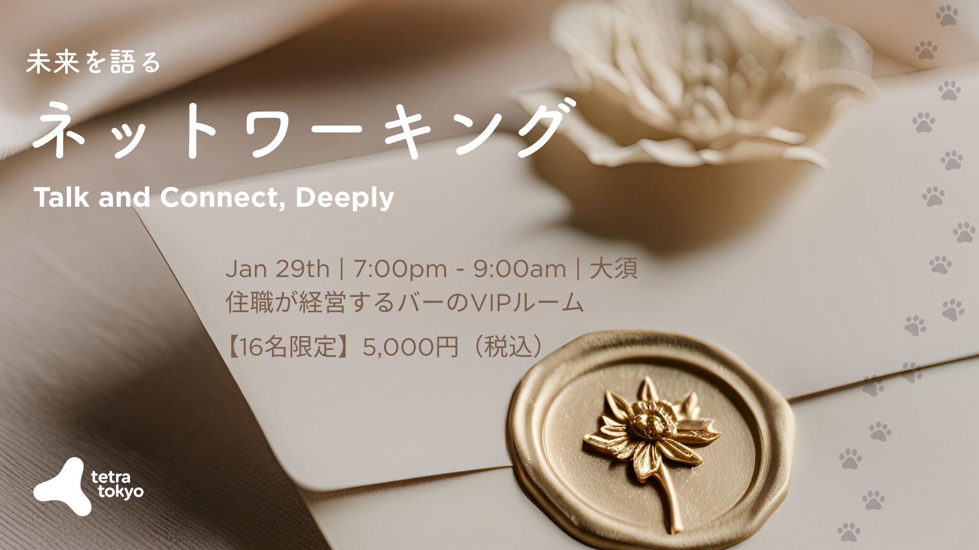 ※ですので、目先の営業や売り込み、投資商談などは禁止。明るい将来に向けての視座の高い相談などは歓迎します。