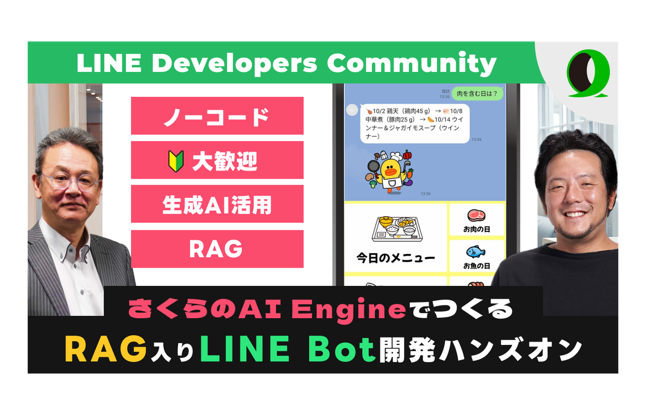 ## イベント概要📝 さくらのAI Engine初ハンズオン開催!LINE Botと組み合わせてみんなが嬉しいサービスを構築できます! 先日リリースされたさくらのAI Engine。初心者でも無料で始めることができ、サービスに生成AIを組み込むうえで強力な味方になること間違いなし。 そこで今回は同じく生成AIと相性が良くインターフェースとして採用されることも増えてきたLINE Botを組み合わせ、生成AIの価値を最大化し、ユーザーに届けることが出来るサービスの作り方をハンズオンで解説します。 講師はさくらインターネットからエバンジェリスト亀田さん、LYからはTech Evange...