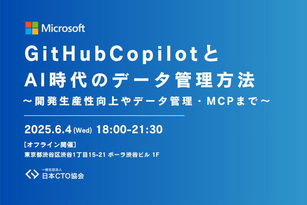 # 概要 本イベントは、日本マイクロソフト株式会社様、レバレジーズ株式会社様、一般社団法人日本CTO協会の共催で、AI時代に必ず必要となる開発生産性の向上とデータの管理方法に関する知見をお伝えするイベントとなります。 特に、AIエージェント開発に取り組むCTO・エンジニア・PMやDXの推進を担当されている方を対象に、GitHub Copilotやマイクロソフトの技術を活用したデータへのアプローチや、スタートアップ企業の最新事例を共有します。 AI技術の進展に伴う開発生産性の向上とデータに関わる課題や解決策を学び、実務に役立つTipsなども聞くことが出来る貴重なチャンスです。 ####...