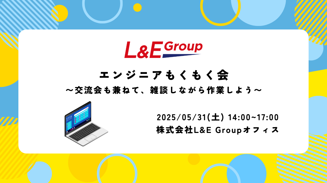 ## 🎉 イベント概要 エンジニアにとって、横の繋がりってとても大切ですよね。 エンジニアが集まり、もくもくと作業しつつも、お話しもできる場を設けたく、もくもく会を開催してみました🙌 ゆるいもくもく会となっておりますので、イベントに参加したことない方や、未経験エンジニアの方も大歓迎です🥳 ご参加お待ちしております! ## 😁 こんな方におすすめ * エンジニアの横の繋がりを作りたい方 * エンジニアイベントに参加したことがない方 * 未経験エンジニアの方 ## 🧭 参加方法 * 本connpassページより申し込み ## 📜 開催概要 ###...