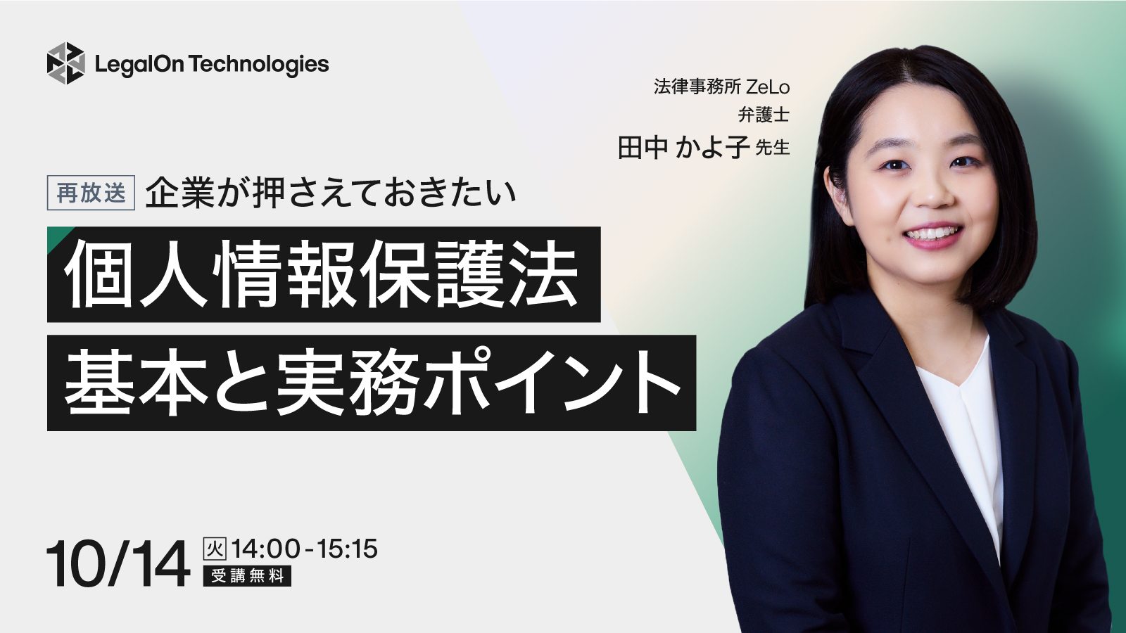 ※本セミナーは4/24(木)に開催された「企業が押さえておきたい 個人情報保護法の基本と実務対応のポイント」の再放送です。 個人情報保護法は、社会のデジタル化やデータ利活用の進展に対応するため、原則として3年ごとに見直しが行われており、企業には適切な管理と運用が求められています。2022年の改正では、情報管理の厳格化や違反時の罰則強化が進められ、直近では2025年に改正が予定されており、今後もさらに改正される見込みです。 個人情報の漏えいや法違反が起きてしまった場合の社会的批判は強く、事業への影響も甚大なものとなります。一方で、規制の強化や変化に対応するなかで、既存の社内ルールが変更を繰り返し複雑化するなど混乱が生じていることもあるのではないでしょうか。 本セミナーでは、個人情報・個人情報保護法の基礎知識から、取り扱う際の基本ルールや企業に求められる実務対応まで分かりやすく解説します。 講師を務めるのは、企業の法務部員として長年リスクコンプライアンス体制の整備・運営をはじめ、多様な業務に従事してきた経験をもとに、現在は多様な企業を支援している法律事務所ZeLo 弁護士の田中かよ子先生です。 なお、本セミナーは、個人情報保護法の基本的な内容を体系的に学びたい方を対象として想定しております。基礎を押さえたうえで、さらに実務での具体的な対応や応用的な論点にご関心のある方は、2025年10月21日(火)開催のセミナー「実務で差がつく!個人情報保護法の応用知識と対応ポイント」もあわせてご参加いただけますと幸いです。