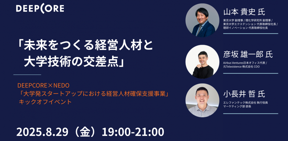 AI特化型ベンチャーキャピタルの株式会社ディープコア(以下、DEEPCORE)は、NEDO「大学発スタートアップにおける経営人材確保支援事業(MPM)」 の採択※ を受け実施する「... powered by Peatix : More than a ticket.