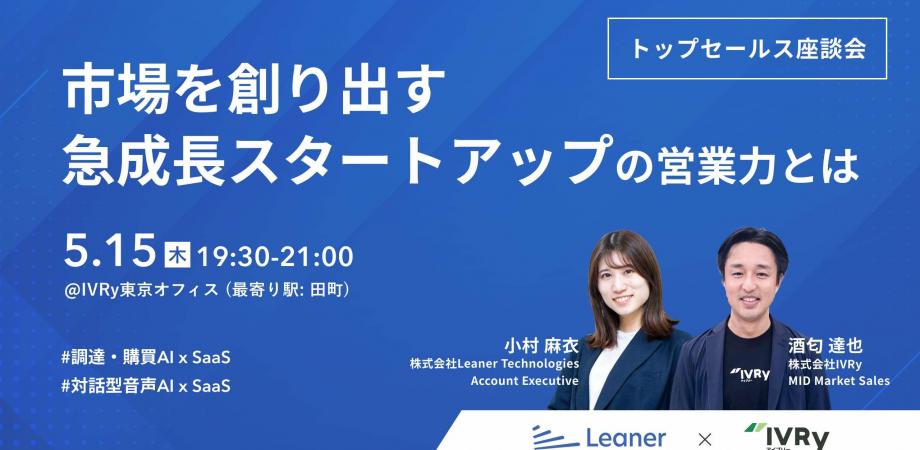 急成長を遂げるスタートアップ、リーナーとIVRyによるトップセールス座談会を開催! 調達・購買領域に生成AI×SaaSを活用した革新的ソリューションを提供する「リーナー... powered by Peatix : More than a ticket.