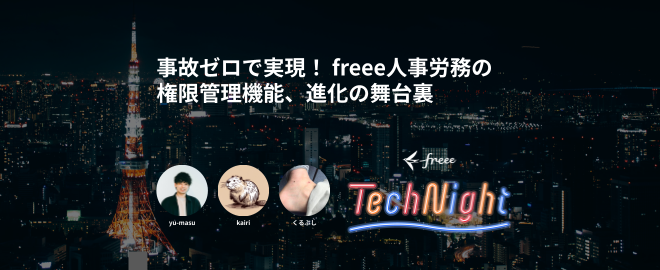 ## 今回のfreee Tech Nightは……? freee人事労務には、各機能における権限設定が詳細にできないことで、労務担当者の業務を各部署で分担できないという課題がありました。特に従業員数が拡大するほど労務担当者の負担が大きくなっていました。 そこでユーザーが権限をカスタマイズできる "カスタム権限機能" を開発することになったのですが、そのための準備がまったく整っていませんでした。 freee人事労務のアクセス制御は独自のしくみで提供されていました。一方で freee は「統合型」を目指すにあたって、権限管理基盤マイクロサービスを開発し各 freee サービスへの導...