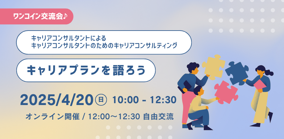 キャリアコンサルタントによるキャリアコンサルタントのためのキャリア交流会 \キャリアプランを語ろう/ 内容:オンライン交流会(zoom) テーマ:キャリアコンサルティ... powered by Peatix : More than a ticket.