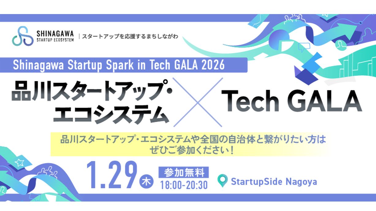 今回は、1/27(火)~29(木)に名古屋市にて開催されるTech GALAのサイドイベントとして品川区のスタートアップ・エコシステムを体感できるイベントを開催。品川区のスタートアップと全国の自治体が繋がり、事業進出や事業拡大に向けたマッチングイベントを開催します。今回は新たにスタートアップ支援戦略を発進し始めた下関市と共催し、また東海エリアの自治体の皆さまにもご登壇いただきます!