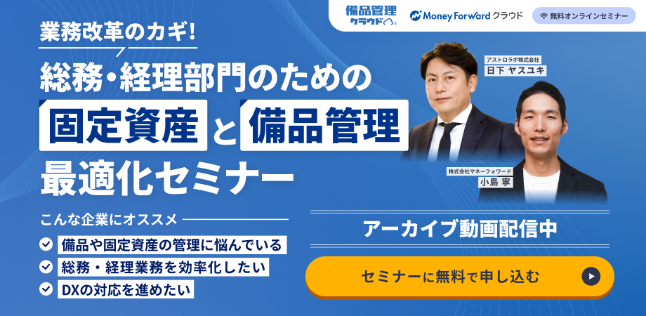 【概要】 経理・総務部門の皆様、固定資産と備品の管理業務にお悩みではありませんか? 今回はアストロラボ株式会社と株式会社マネーフォワードから専門家が登壇。それぞれが提供するサービス... powered by Peatix : More than a ticket.