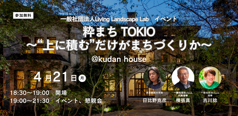 粋 まち TOKIOー“上に積む”だけがまちづくりか?ー 都市は単なる建築物の集合ではなく、人々の生き方や文化、価値観が織りなす有機... powered by Peatix : More than a ticket.