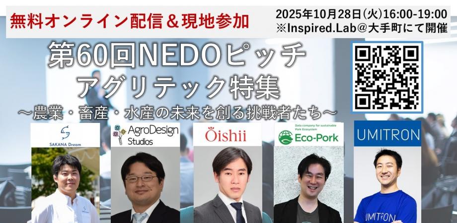 第60回NEDOピッチ アグリテック特集 ~農業・畜産・水産の未来を創る挑戦者たち~ 7月に実施した第59回NEDOピッチに続きまして、10月28日(火)に「第60回NEDOピッチ... powered by Peatix : More than a ticket.