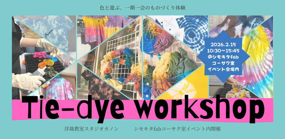 タイダイ染めワークショップ― 布と色に向き合う、ものづくり体験 ― シモキタFABコーサク室のイベント内ワークショップとしてタイダイ染めワークショップを開催します 布を縛り、色を入... powered by Peatix : More than a ticket.