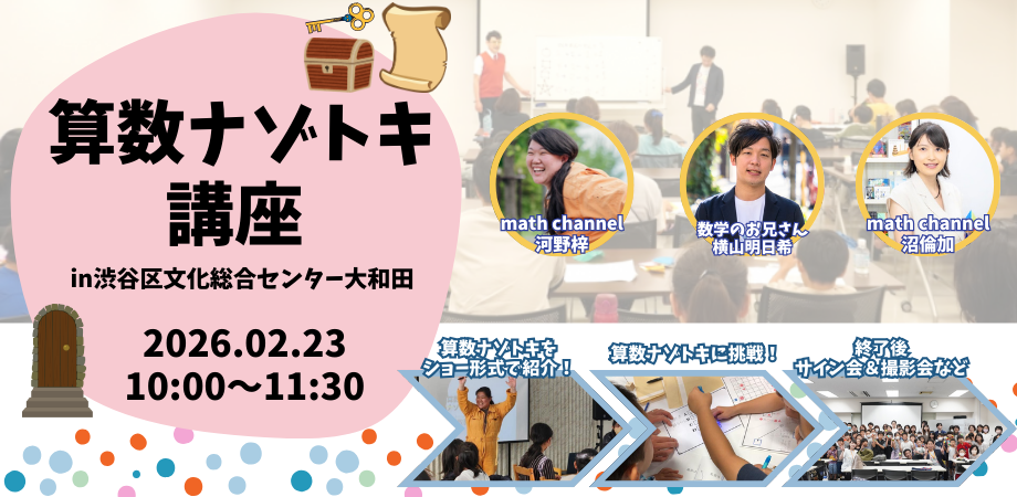 \2026年2月23日(月・祝) 開催決定/ 10時00分~11時30分に親子で楽しむ算数ナゾトキ講座を開催することになりました!※チケットの購入は親子での参加人数分購入下さい! ... powered by Peatix : More than a ticket.
