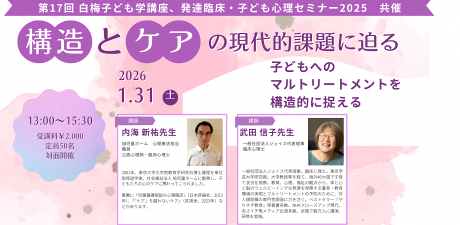 イベント詳細 「第17回白梅子ども学講座、発達臨床・子ども心理セミナー2025 共催」開催のご案内
