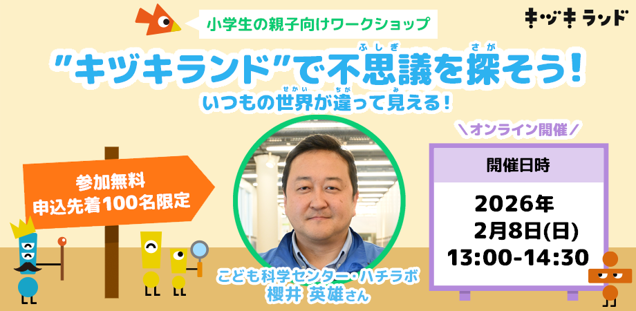 キヅキランドは、こどもたちが身の回りの不思議を発見して楽しむウェブサイトです。