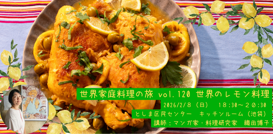 イベント詳細 こんにちは!「世界家庭料理の旅」と題して世界の食卓を訪れてマンガを描くことをライフワークとしているマンガ家の織田博子と申します😊✈️🌍料理を通じて、世界の国々の文化や人々について知ってもらうきっかけになればと思い、2017年より料理教室を毎月開催しています🍳✨今回の世界の家庭料理のテーマは「レモン」🍋。TOKYO LEMON PROJECTさんとコラボで、国内のこだわりのレモンを使ったレモンづくしの食卓を作ります。世界の料理を作って食べることで、世界の国を身近に感じることができます🌏🍴