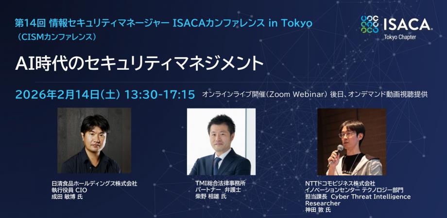 生成AIの急速な浸透は、組織の競争力を高める一方で、セキュリティマネジメントに新たな課題を突き付けています。今回は、経営・法務・技術の最前線で活躍する有識者をお招きし、それぞれのお立場からAIの利活用を前提とした、セキュリティマネジメントの実際や展望をご講演いただくとともに、ISACAが新たに提供を開始したAIセキュリティマネジメント資格「AAISM」についてもご紹介いたします。本カンファレンスが、ご参加いただく皆様にとって、AI時代にふさわしいマネジメントの指針を得る機会となれば幸いです。