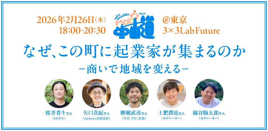 【概要】開催日時:2026年2月26日(木)18:00-20:30 トークイベント/食事会会場:3×3 Lab Future(東京都千代田区大手町1丁目1−2 大手門タワー・ENEOSビル 1階)参加費:無料主催:Next Commons Lab愛荘