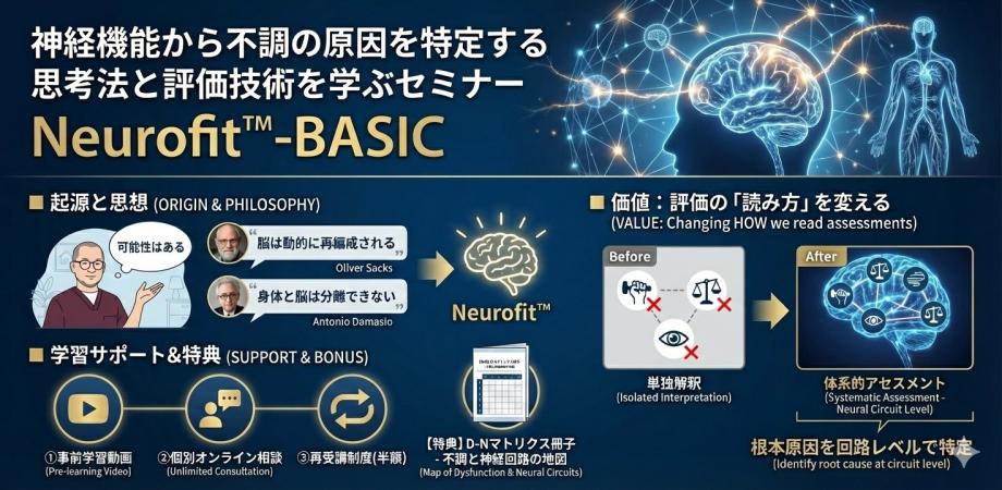 「神経のはたらきから不調の原因を見つける考え方と評価の技術を学ぶセミナー」Neurofit™-BASIC セミナー ■ Neurofit™のは... powered by Peatix : More than a ticket.