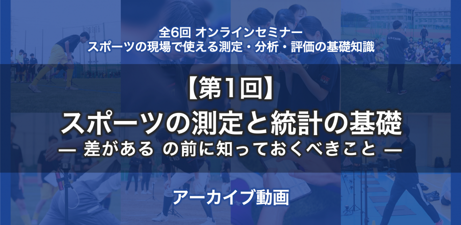 25/10/13(月):第1回 スポーツの測定と統計の基礎 【今回】25/11/10(月):第2回 スポーツの測定の妥当性と信頼性25/12/22(月):第3回 スポーツの測定機器の選択25/01/19 (月):第4回 スポーツの測定の標準化・リスク管理25/02/09(月):第5回 スポーツの測定のデータ分析25/03/09(月):第6回 結果の解釈・評価とフィードバック