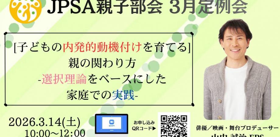 🌱JPSA親子部会 3月定例会🌱 子どもの内発的動機付けを育てる、親の関わり方― 選択理論をベースにした家庭での実践 ― 今回お話しいただくのは俳優/映画・舞台プロデューサー山内誠... powered by Peatix : More than a ticket.
