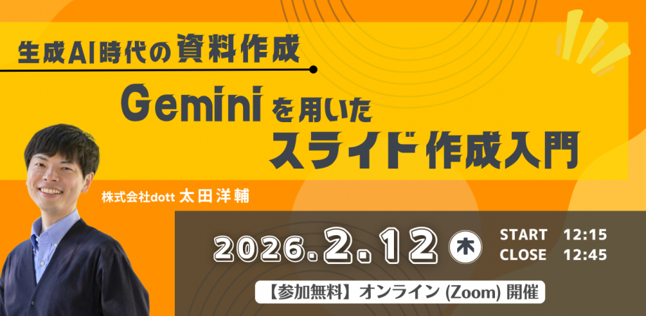 ビジネスの現場において、スライド資料作成は欠かせない業務である一方、「構成を考えるのに時間がかかる」「デザインがまとまらない」といった悩みを抱える方は少なくありません。 本セミナーでは、Googleの生成AI「Gemini」を活用し、スライド作成の工数を劇的に削減する方法をお伝えします。