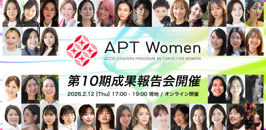 東京都主催の女性ベンチャー成長促進事業「APT Women」。第10期受講生の中から選抜された5名の女性起業家がプログラムの成果を発表します!