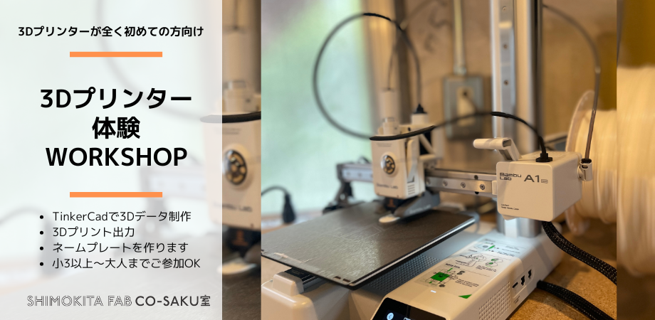 ●使うCADソフト「Tinkercad」Tinkercadは入門用の無料3Dモデリングソフトです。ダウンロード不要で、プラウザ上で操作できます。CADや3Dモデリングがはじめての方やお子さんでも、直感的に操作できる使いやすいソフトです。●使う3Dプリンター3Dプリンターにはいろいろなタイプがありますが、本ワークショップで使うのは、樹脂(フィラメント)をノズルから押し出して積層していくタイプ(FDM式3Dプリンター)です。<開催概要>●日時:2026年2月15日(日) 13:00-15:00 ※プリントの出力完了が終了時刻を30分程度過ぎる場合があります。●場所:シモキタFABコーサク室 世田谷区北沢2-3-3 第2友和ビル 2階 下北沢駅から徒歩4分●参加費用:6,000円/一人●対象:小学3年生以上〜大人 ※マウスとキーボードが使えることが参加条件です●定員:6名(最小開催人数2名)※パソコンはシモキタFABコーサク室で貸し出します。手ぶらでお越しください。※ワークショップに参加しないお子さんの同伴はご遠慮ください。<キャンセル規定>開催日前日〜当日のキャンセル:参加費用の100%<ご来室にあたってご協力のお願い>ご来室前に体調に異変を感じられたり発熱がある方は、ご来室をお断りいたします。また、ワークショップ中の食事やおやつはご遠慮ください。水筒などはご持参いただけます。 続きを読む...