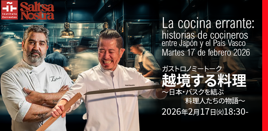 イベント詳細 -越境する料理 -日本・バスクを結ぶ料理人たちの物語~セルヒオ・オルティス・デ・サラテ & 松久秀樹を迎えて~2026年2月17日㈫18:30-インスティトゥト・セルバンテス東京入場無料、要予約言語:スペイン語・日本語