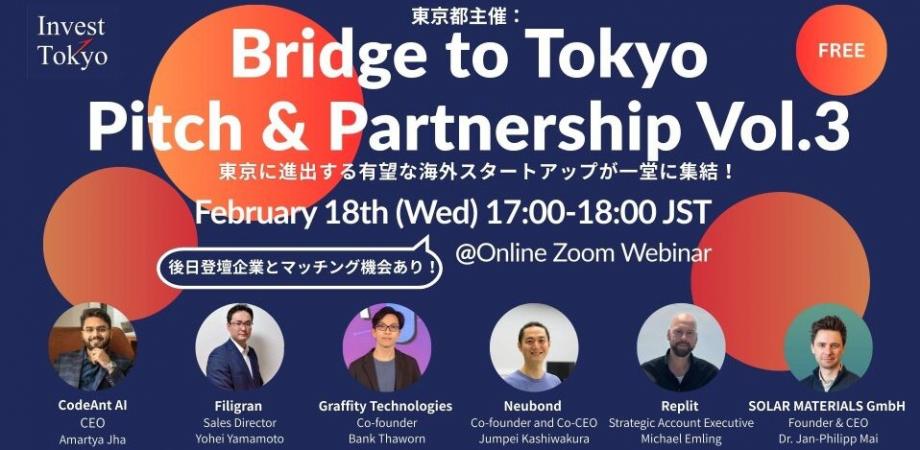 本ピッチイベントは東京都主催のピッチイベントで、米国のユニコーン企業をはじめ、東京進出に関心のあるAI・ヘルスケア・サイバーセキュリティなどの有望な海外スタートアップ6社がオンラインで登壇し、ピッチ・ビジネスマッチングを通じた協業の機会を提供します。