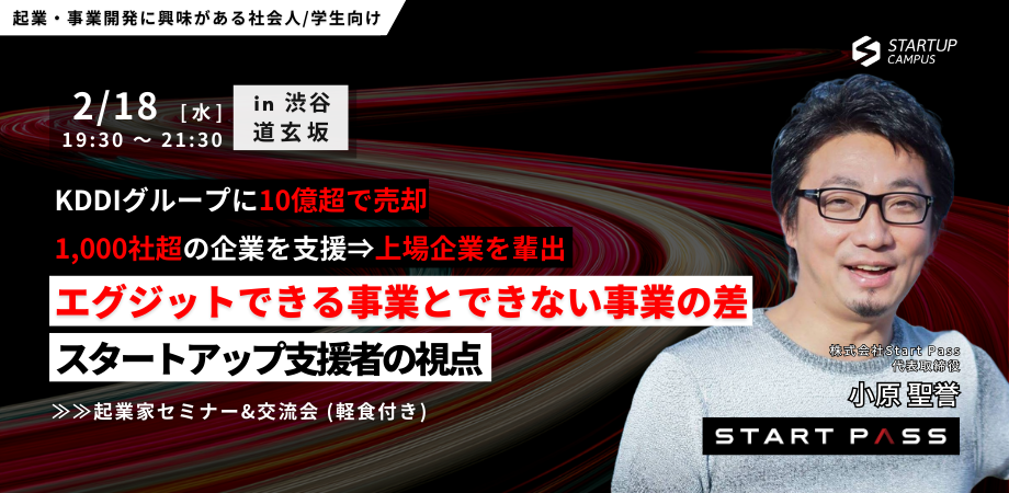 小原さんは、1社目の事業をKDDIグループへ10億超で売却した経験を経て、2度目の起業。 自身の売却経験と、エンジェル投資家としての活動を背景に、「スタートアップの生存率と成長率を上げる」ことを目指し、経営支援を効率化するプラットフォーム「Start Pass」を立ち上げました。