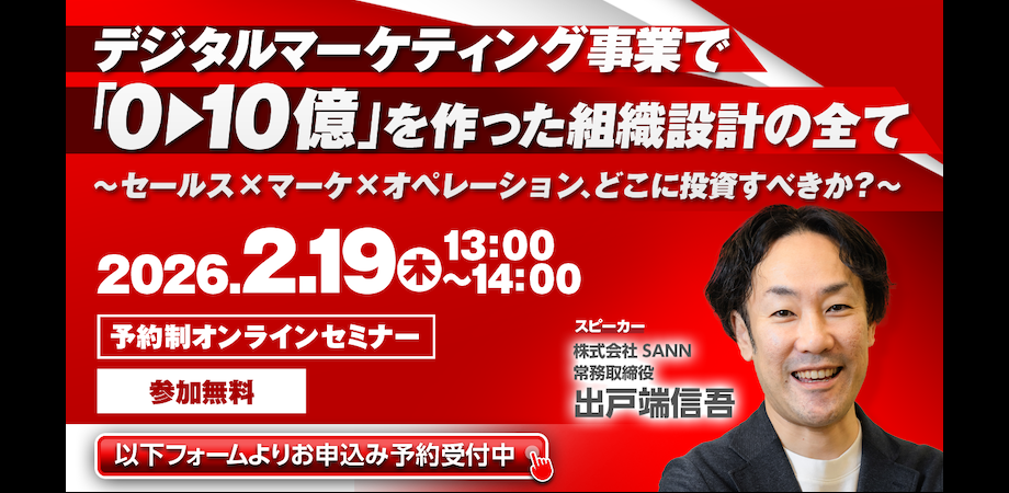 デジタルマーケティング事業で「0→10億」を作った組織設計の全て〜セールス×マーケ×オペレーション、どこに投資すべきか?〜