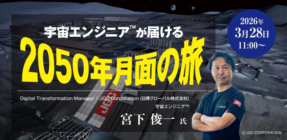 そこで大きな期待を背負っているのが、JGCが構想する月面スマートコミュニティ『LUMARNITY®』です。今回はプラントエンジニアリングの知見を活かし、月面インフラの開発をリードするJGCの宮下俊一氏にご登壇いただき、月での暮らしについて楽しく教えていただきます。宇宙についてより深く学んでみませんか?ぜひご参加ください!講演者:Digital Transformation Manager / JGC Corporation (日揮グローバル株式会社)宮下 俊一 氏概要:1975年大阪府生まれ。1998年大阪大学工学部を卒業し、JGC Corporation (現・日揮グローバル株式会社)に入社。サウジアラビア・オマーン・マレーシア・ベトナム・カナダなど9か国のOil & Gasプラント (16 Large & Complex Projects)のエンジニアリング業務に従事。2018年よりIT Grand Plan2030策定・推進メンバー、2020年からエンジニアリングDXのプログラムリーダーを担当。エンジニアリグDXを実現した未来の姿として、Lunar Smart Community (Lumarnity®)を提唱し、技術開発を管掌。