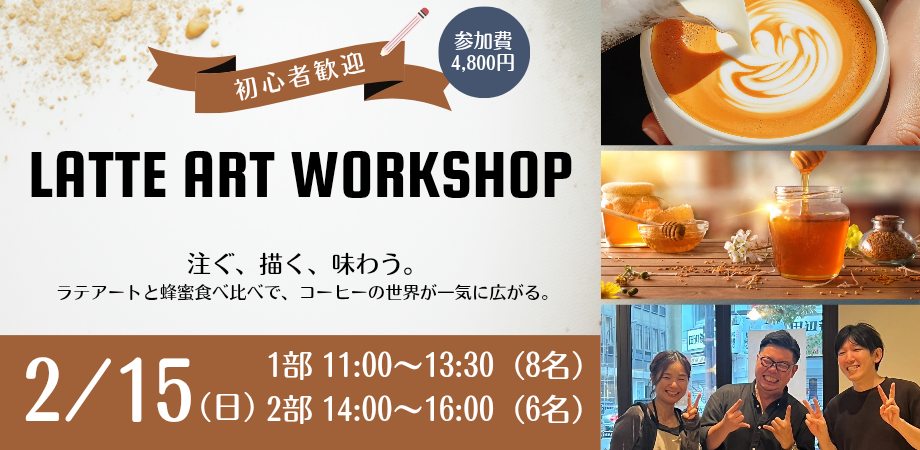 ☕️ 2/15(日)開催|ラテアート × 蜂蜜 体験ワークショップ 「注ぐ」だけじゃ終わらない。 ミルクの流れを感じて、ラテに表情を描く時間。 その合間に、Number... powered by Peatix : More than a ticket.