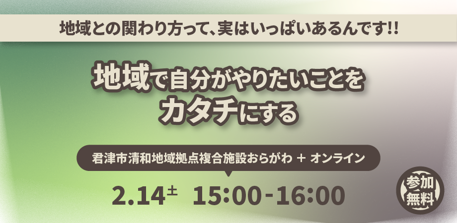 ※主催:コミュニティ清和 協力:株式会社プレイバッカーズ本イベントは君津市が委託する「関係人口創出による清和地域活性化事業」の一環として行うものです。 続きを読む 隠す