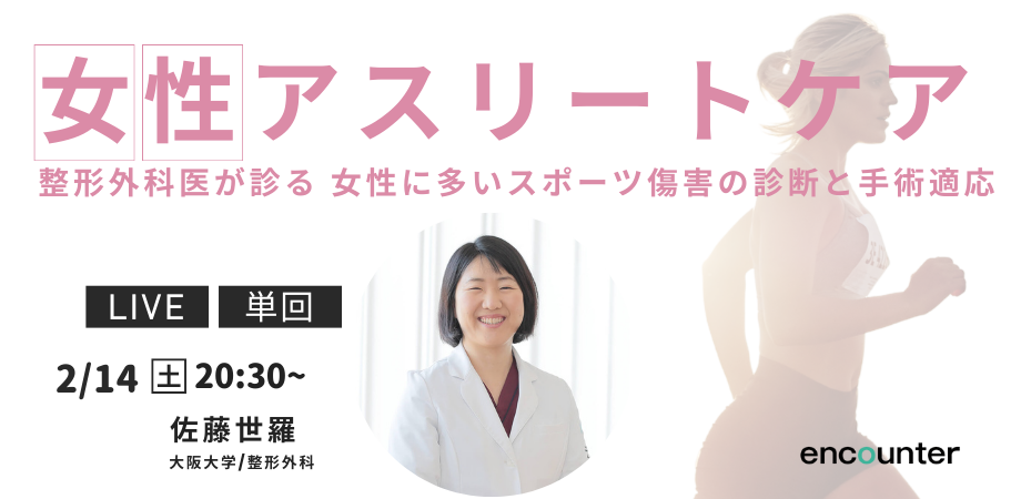 イベント詳細 【女性アスリートケア】整形外科医が診る 女性に多いスポーツ傷害の診断と手術適応第6期encounter school 第2回授業の単回参加者用のイベントとなります