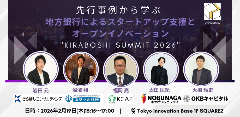 🌟Kiraboshi Summit 2026 地方銀行のパネルディスカッション🌟 全国の地方銀行の中でも、スタートアップ支援やオープンイノベーションにおいて先行して取り組む地方銀行... powered by Peatix : More than a ticket.