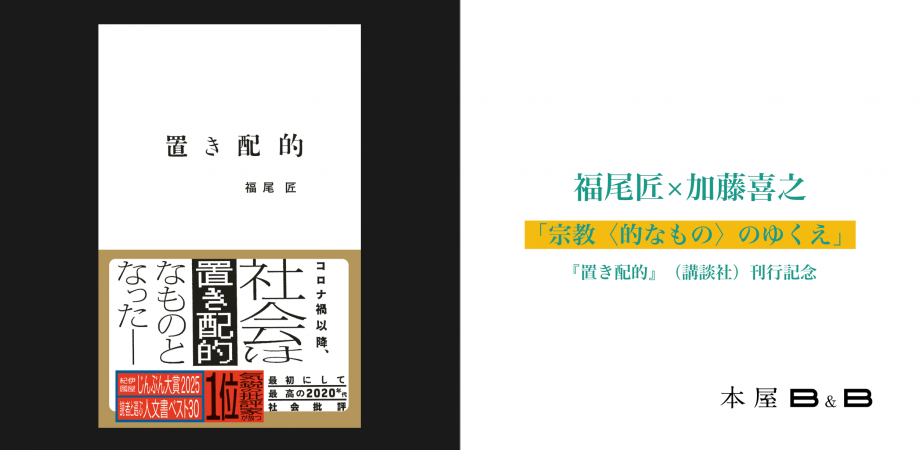 今年11月に福尾匠さんの新刊『置き配的』が刊行されました。本書は、メッセージの伝達がメタデータの共有に取って代わられる(=「置き配的」になった)社会を批判的に検討し、それに抗う試みを収めた批評集です。この刊行を記念して、トークイベントを開催します。出演は福尾匠さん、ゲストに加藤喜之さんをお迎えします。今回のイベントでは「宗教〈的なもの〉」をテーマにお話しいただきます。本書の中で福尾さんは、「なぜ〈カルト〉や〈信者〉といった言葉が軽いスラングになっているのか」という問題について置き配的システムとの関係から論じています。一方、加藤さんは今年刊行された著書『福音派―終末論に引き裂かれるアメリカ社会』で、福音派という宗教集団・運動が現代に至るまで米国の政治や文化にどのように影響を与えてきたかを論じています。(擬似的な)宗教性を他者に貼り付けることで見過ごされているものは何か、「異教」との共存をどう考えるか、いま本来の宗教に何ができるのか…。宗教〈的なもの〉の隆盛とそのゆくえをめぐる対談、どうぞお見逃しなく!