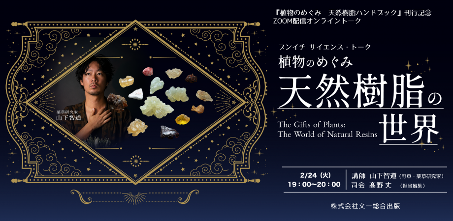 イベント詳細 天然樹脂は、香を嗜む人やアロマセラピーで使用する人以外、あまりなじみがないかもしれません。でもじつは古代からさまざまな用途に利用され、世界中の人々の生活を支える「植物のめぐみ」です。そんな天然樹脂を紹介した国内初の図鑑『天然樹脂ハンドブック』が2月20日発売となります。本書の出版を記念し、著者で薬草研究家の山下智道氏がブンイチのサイエンス・トークに出演。天然樹脂とはなにか、その多様な利用方法と興味深い魅力について熱く語ります。楽しみ方の実演紹介も予定していますので、お見逃しなく!