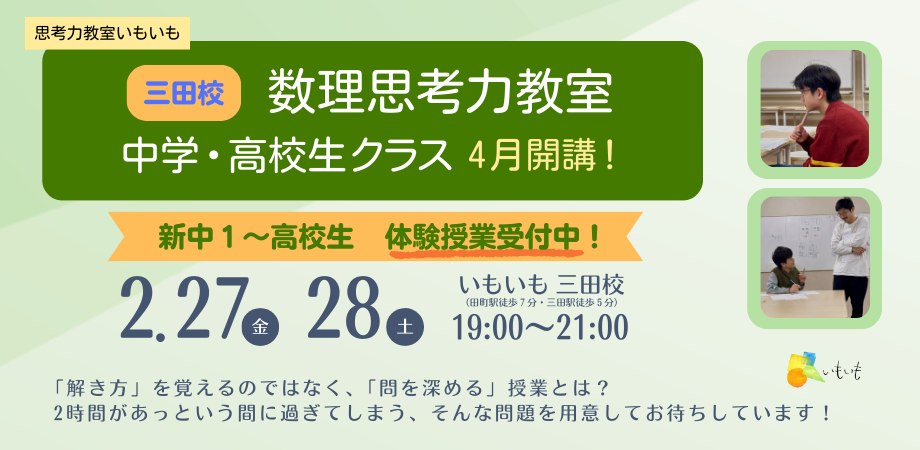 【数理思考力教室】中高生クラス 三田校開講 <2026年4月>