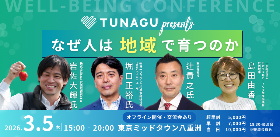 イベント詳細 TUNAGU presents 「ウェルビーイングカンファンレス」- なぜ人は地域で育つのか –