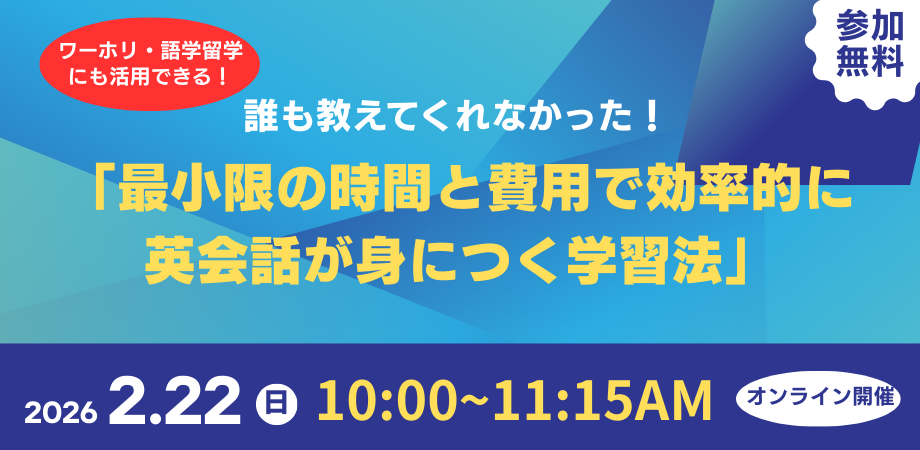 このセミナーでお話しするポイントを知れば、より少ない時間と費用で効率的に英語が話せるようになり、語学留学やワーホリでより大きな成果が得られます!
