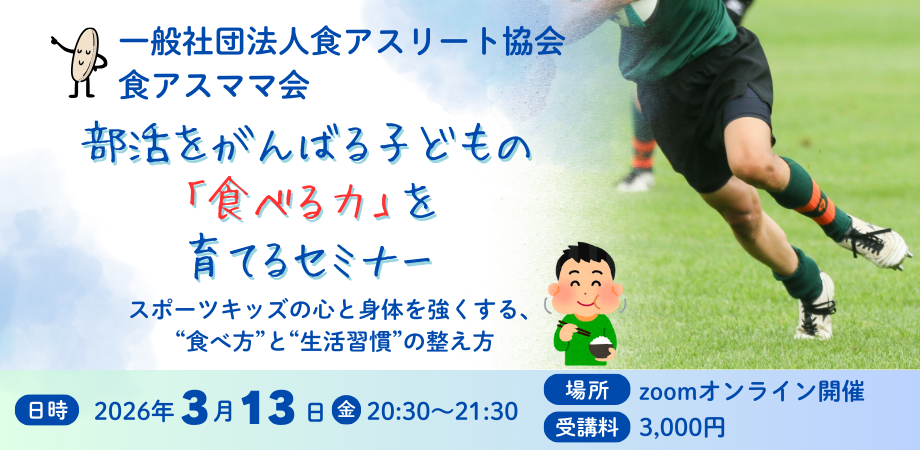 イベント詳細 このセミナーは…スポーツをがんばるお子さんを支えるママ・パパへ。 「何をどれだけ食べさせたらいいの?」「頑張ってるのに身体づくりが追いつかない…」 そんな悩みを、“食べる力”の視点で解決するセミナーです!