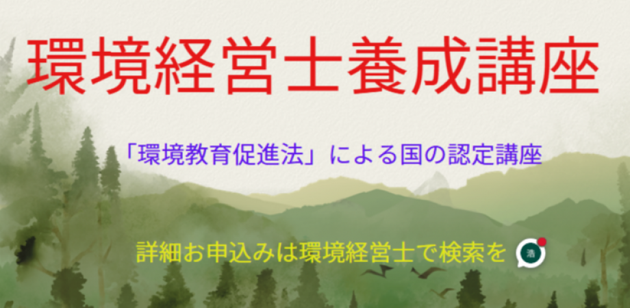 イベント詳細 今や脱炭素、ゼロカーボン、地球温暖化、排出量取引等国を挙げて取り組んでいます。企業人もこれからは環境を考慮した行動をする時代です。一般社団法人日本経営士会は「企業と環境」について取り組んで約20年を経過しました。環境事業部は環境経営の専門家を育てるべく「環境経営士」養成講座を開講して十数年を経ました。この間この講座を修了した人は約1100名です。講座受講後、所定の手続きを経て「環境経営士」の資格を名乗り、企業内、環境コンサルタントとして活躍されています。なおこの講座は「環境教育促進法」による国の認定講座に指定されています。