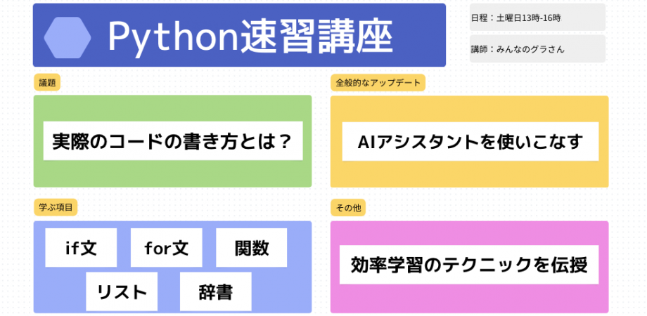 イベント詳細 実践で学ぶPython速習講座【初心者を3時間で卒業!!】