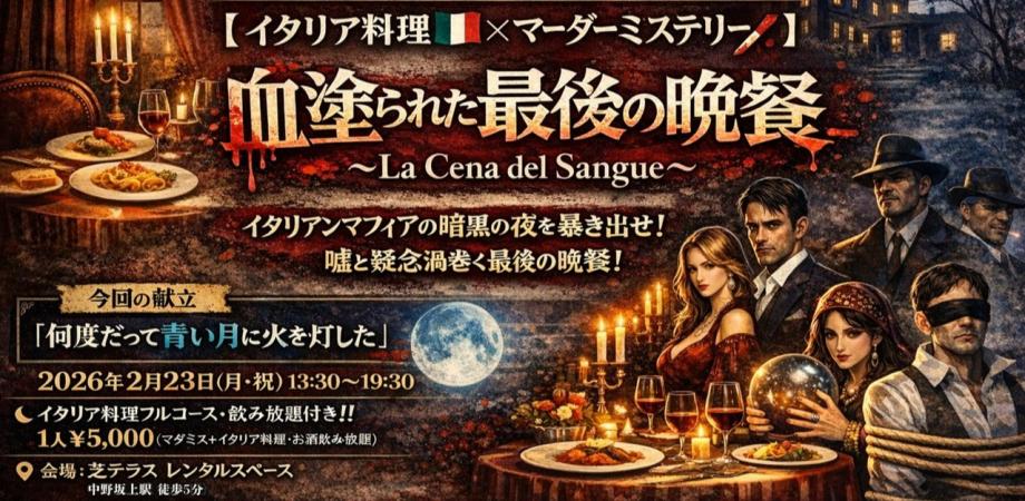 禁断のコラボイベント! 【イタリア料理🇮🇹×マーダーミステリー🔪】 🩸血塗られた最後の晩餐〜La Cena del Sangue〜🩸 イタリアの裏社会を広... powered by Peatix : More than a ticket.